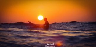 Σερφάροντας στα Φαλάσαρνα με φόντο το ηλιοβασίλεμα