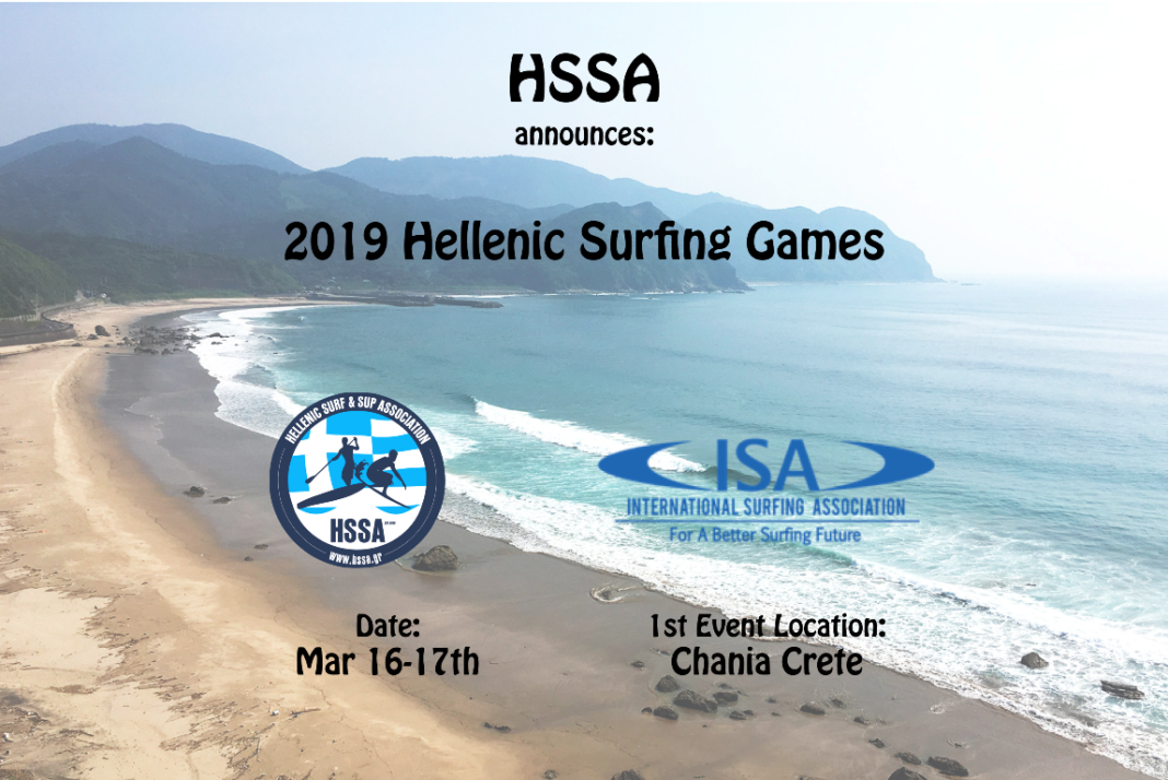 Το Σαββατοκύριακο 16-17 Μαρτίου θα πραγματοποιηθεί στα Χανιά Κρήτης, και συγκεκριμένα στην παραλία της Παλαιοχώρας, η πρώτη εκδήλωση της Πανελλήνιας Ένωσης Όρθιας Σανιδοκωπηλασίας & Κυματολίσθησης (ΠΑΝ.Ε.Ο.Σ.Κ.) / Hellenic Surf & SUP  Association (HSSA), με σκοπό την ανάδειξη των τριών Ελλήνων αθλητών/τριών που θα κερδίσουν το δικαίωμα συμμετοχής, βάσει βαθμολογίας, στα ISA World Surfing Games, στην Ιαπωνία.